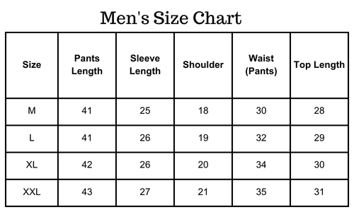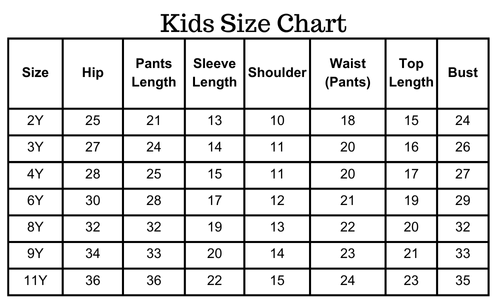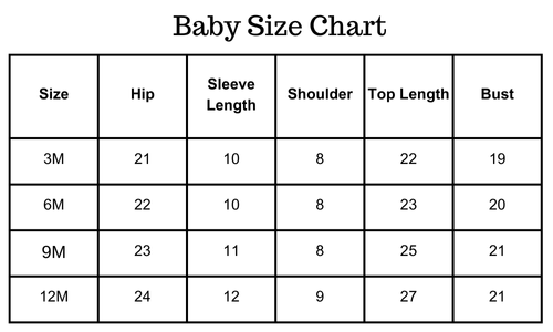 Size chart(inches):
