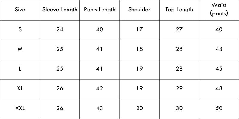 Size Chart(inches):