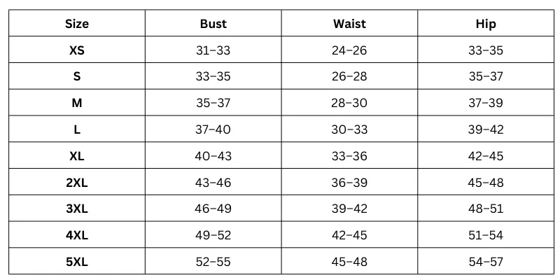 Size Chart: ( Inches )