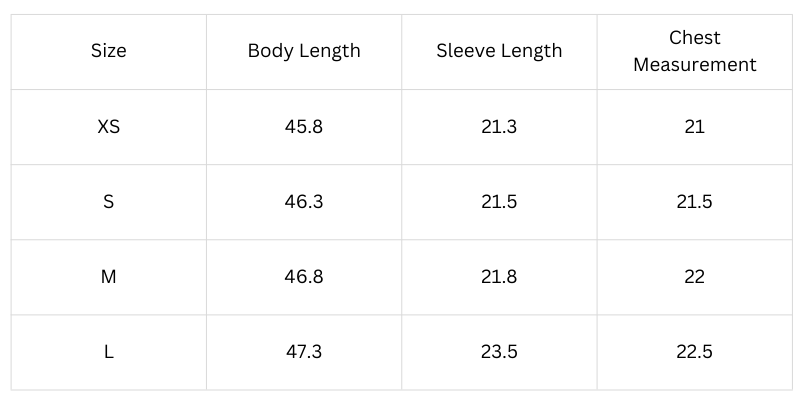 Size Chart (Inches):