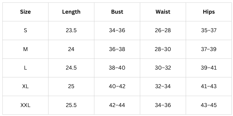 Size Chart (Inches):