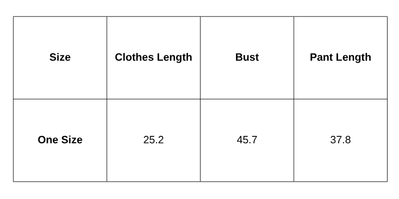 Size Chart (inches):