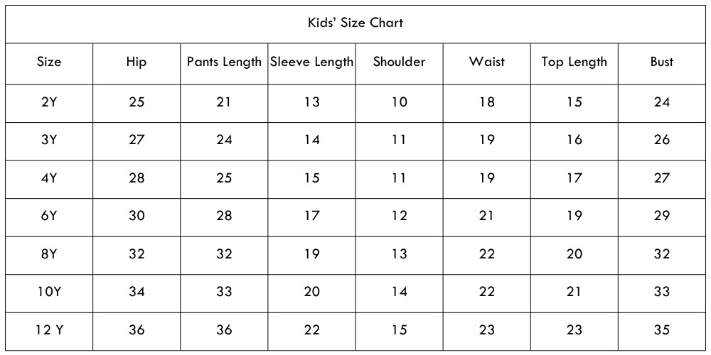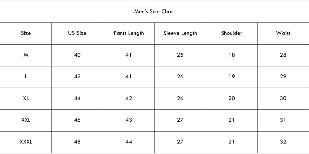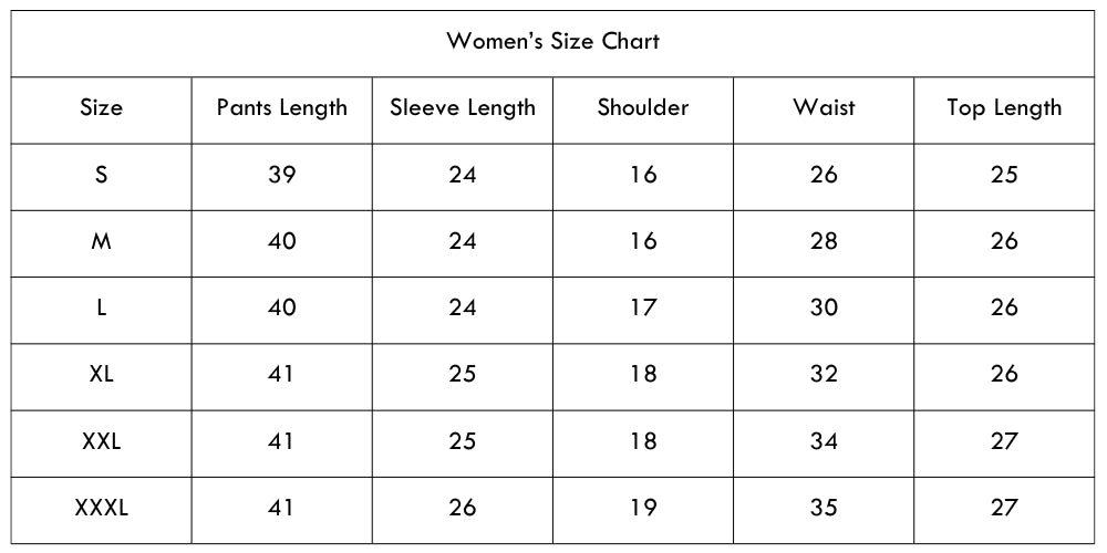 Size Chart(inches):